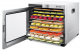 Все параметры процесса — температура, время работы — отображаются на электронной панели. Специальный сигнал сообщит об окончании цикла. Корпус модели выполнен из надежного и долговечного металла, предусмотрены ручки для удобной переноски. Дверца изготовлена из закаленного стекла и позволяет наблюдать за сушкой.